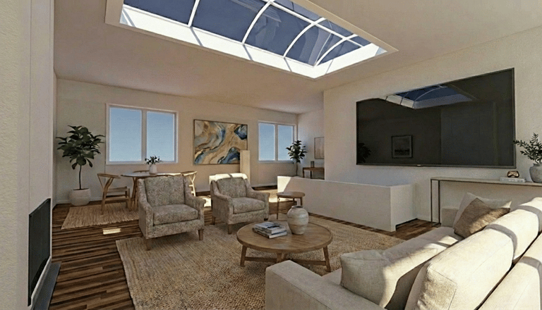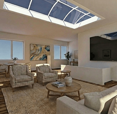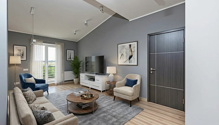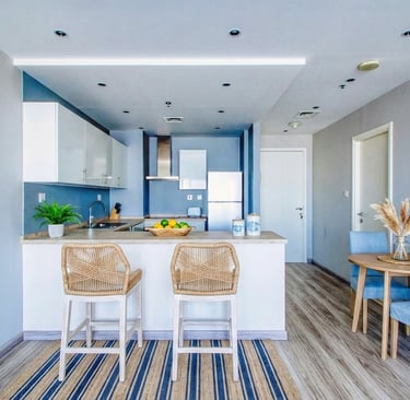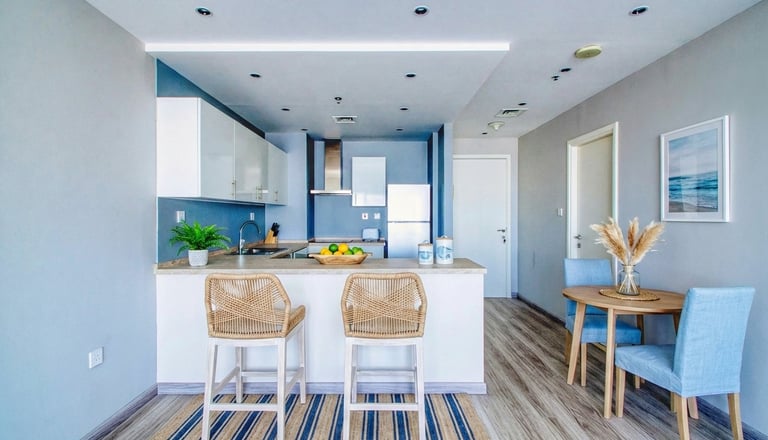 Visualizing a guest-ready Airbnb interior to help owners evaluate layout, furniture scale, kitchen functionality, and booking appeal before investing.